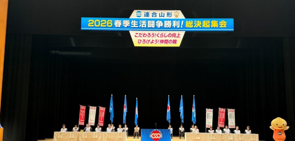 - 2026春季生活闘争勝利!総決起集会連合山形は3月7日(土)やまぎん県民ホールを会場とし、14時から「2026春季生活闘争勝利!総決起集会」を開… 続きを読む »2026春季生活闘争勝利!総決起集会