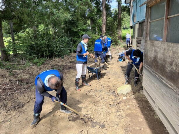 ボランティアを募集していた大江町、川西町、飯豊町に延べ92人を派遣し、家屋床下や敷地内の泥出し・清掃などを行いました。